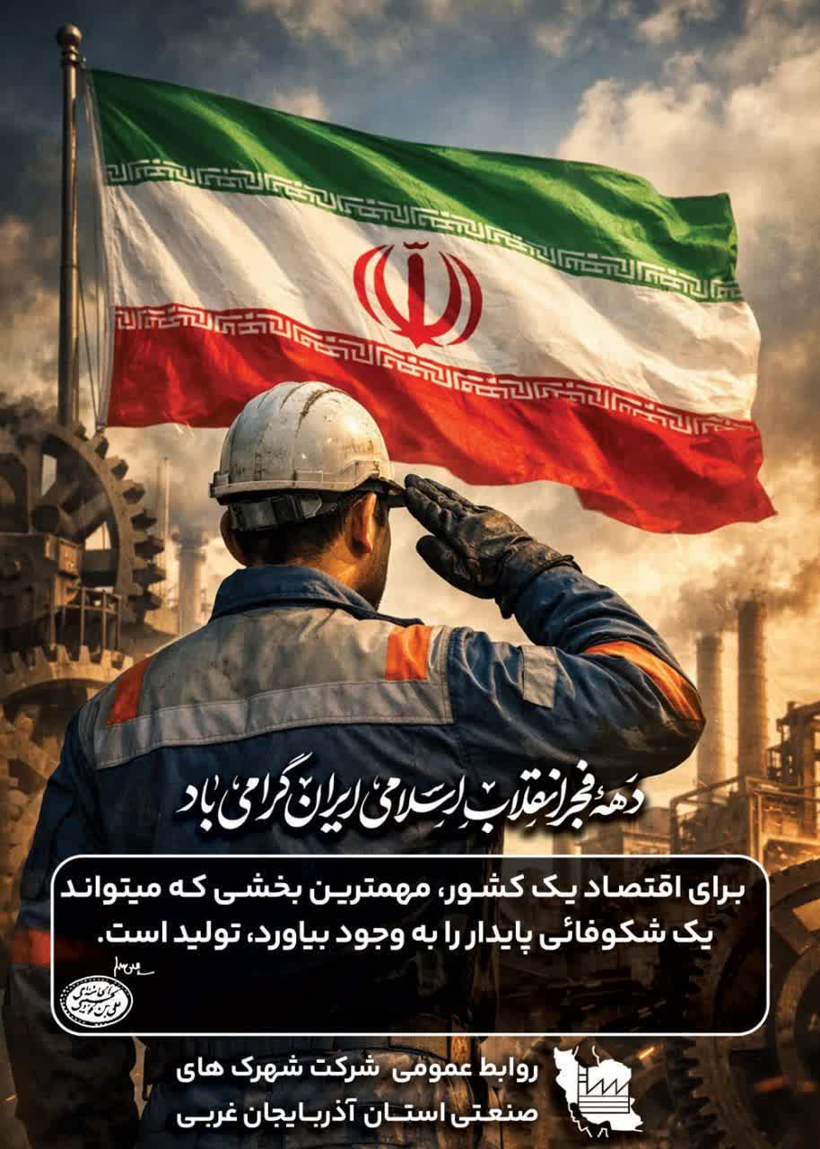 تولید، یکی از ارکان اصلی پایداری و رشد اقتصادی کشور به‌شمار می‌رود. شرکت شهرک‌های صنعتی استان آذربایجان‌غربی با برنامه‌ریزی هدفمند، توسعه زیرساخت‌های صنعتی و ارائه خدمات پشتیبان به سرمایه‌گذاران و واحدهای تولیدی، در مسیر تقویت ظرفیت‌های تولیدی و ایجاد ارزش افزوده پایدار گام برمی‌دارد.... دهه فجر انقلاب اسلامی ایران مبارک باد...
